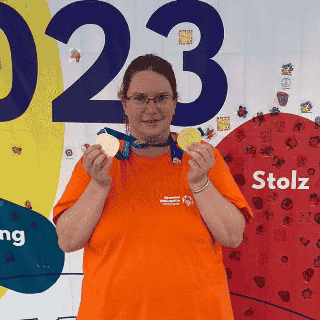 Als Athlete Leader geef ik presentaties op scholen, evenementen en bij bedrijven. Ik deel hoe belangrijk sport voor mij is en welke impact Special Olympics op mijn leven heeft gehad. In 2019 mocht ik dankzij Special Olympics Nederland meedoen aan de World Games in Abu Dhabi. Dat avontuur hielp mij mezelf te ontdekken en veel te leren. Ik ging niet voor goud, maar voor mezelf en nieuwe ontmoetingen. Toch kwam ik met goud terug, en dat veranderde mij: van rups tot vlinder, klaar om de wereld te inspireren met mijn verhaal.