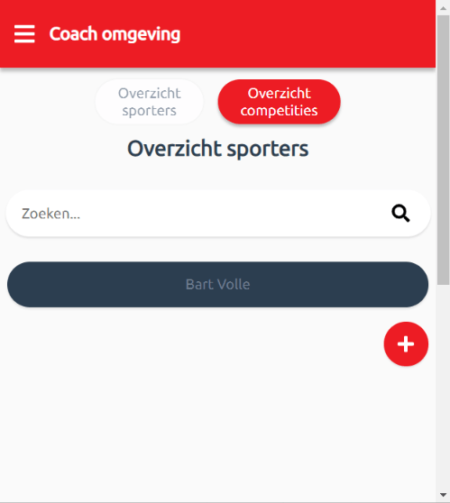 Klik op + om sporters toe te voegen in jouw coach omgeving.